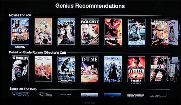 Η Apple πρόσθεσε το σύστημα Genius στο Apple TV προτείνοντας ταινίες και σειρές με βάση τις προηγούμενες αγορές σας.